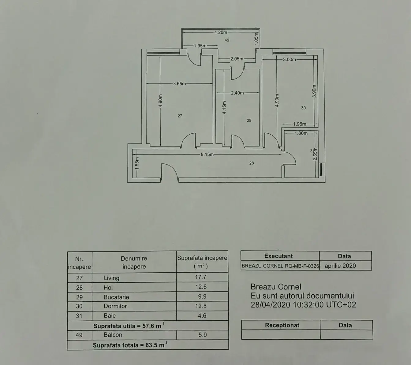 Suprafață utilă: 57,6 mp