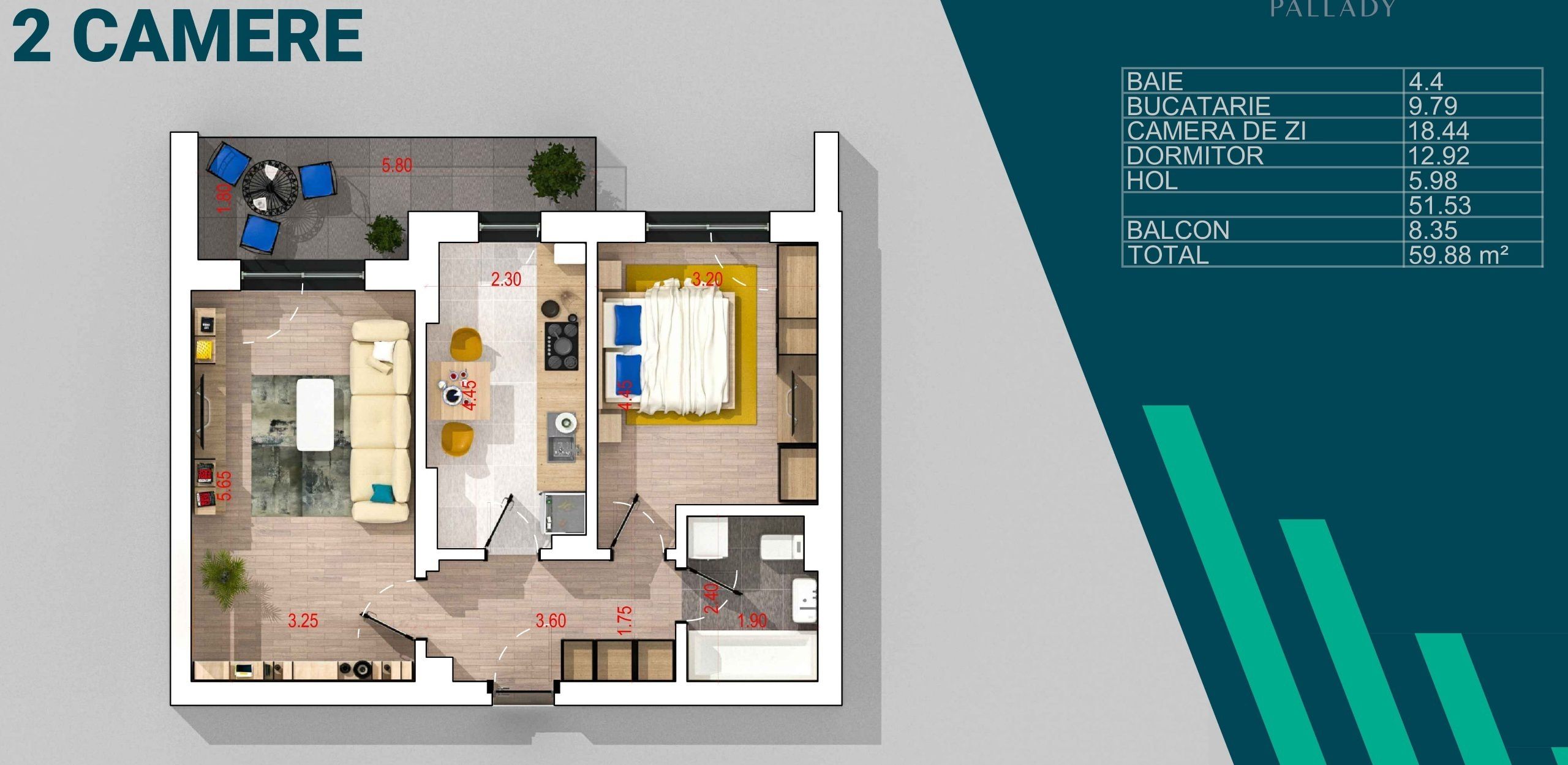 Suprafata utila totala 60.16 mp.