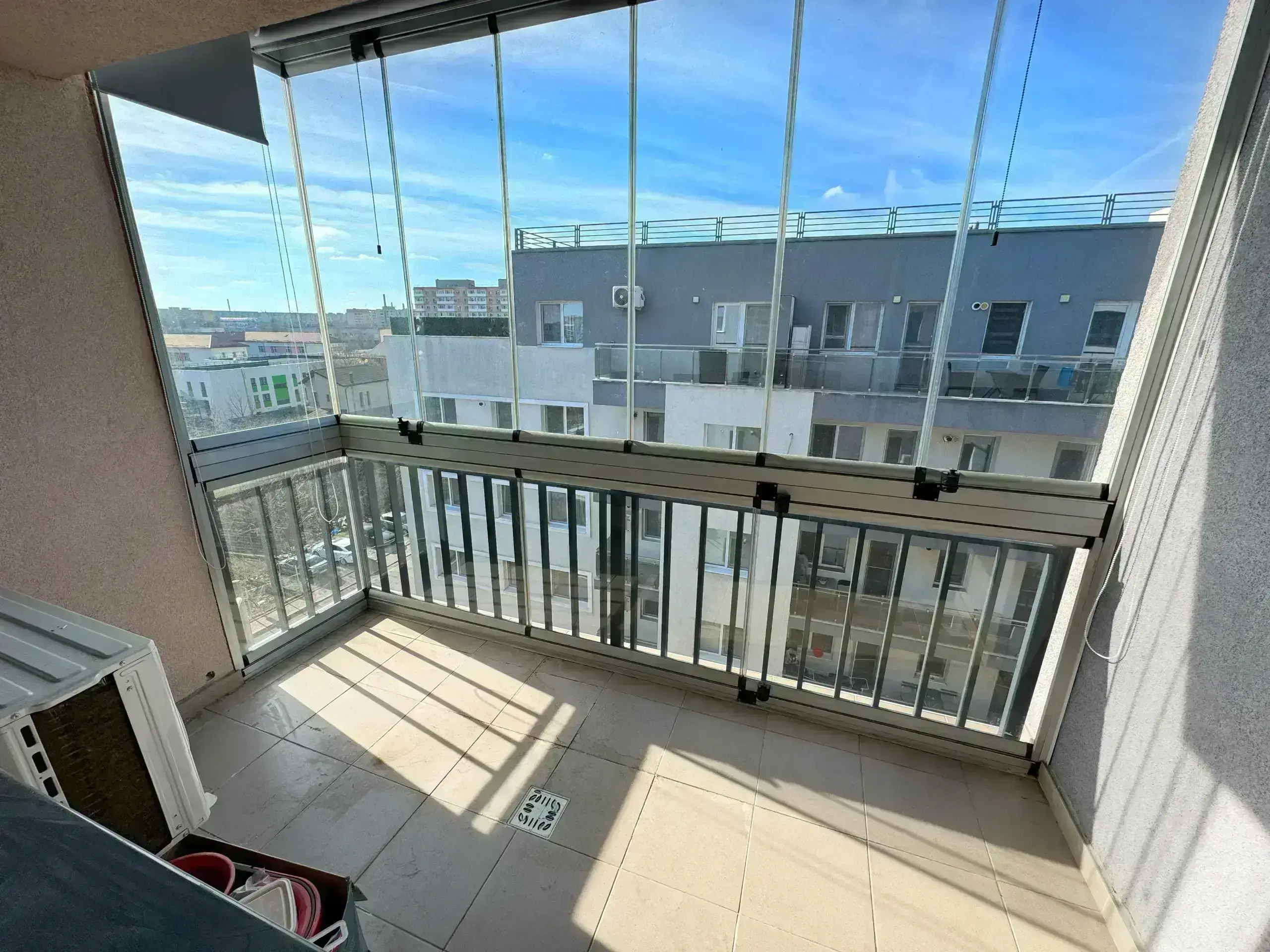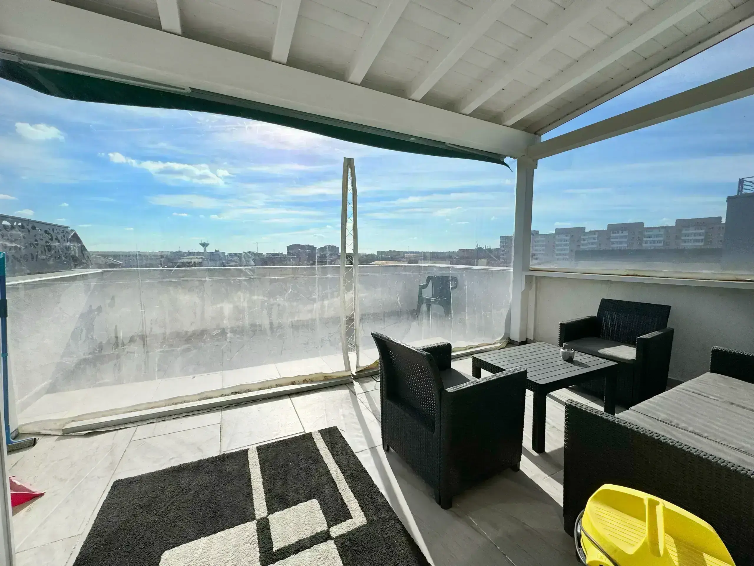 Două balcoane închise și o terasă generoasă orientată spre sud, perfectă pentru relaxare sau mic dejun în aer liber.