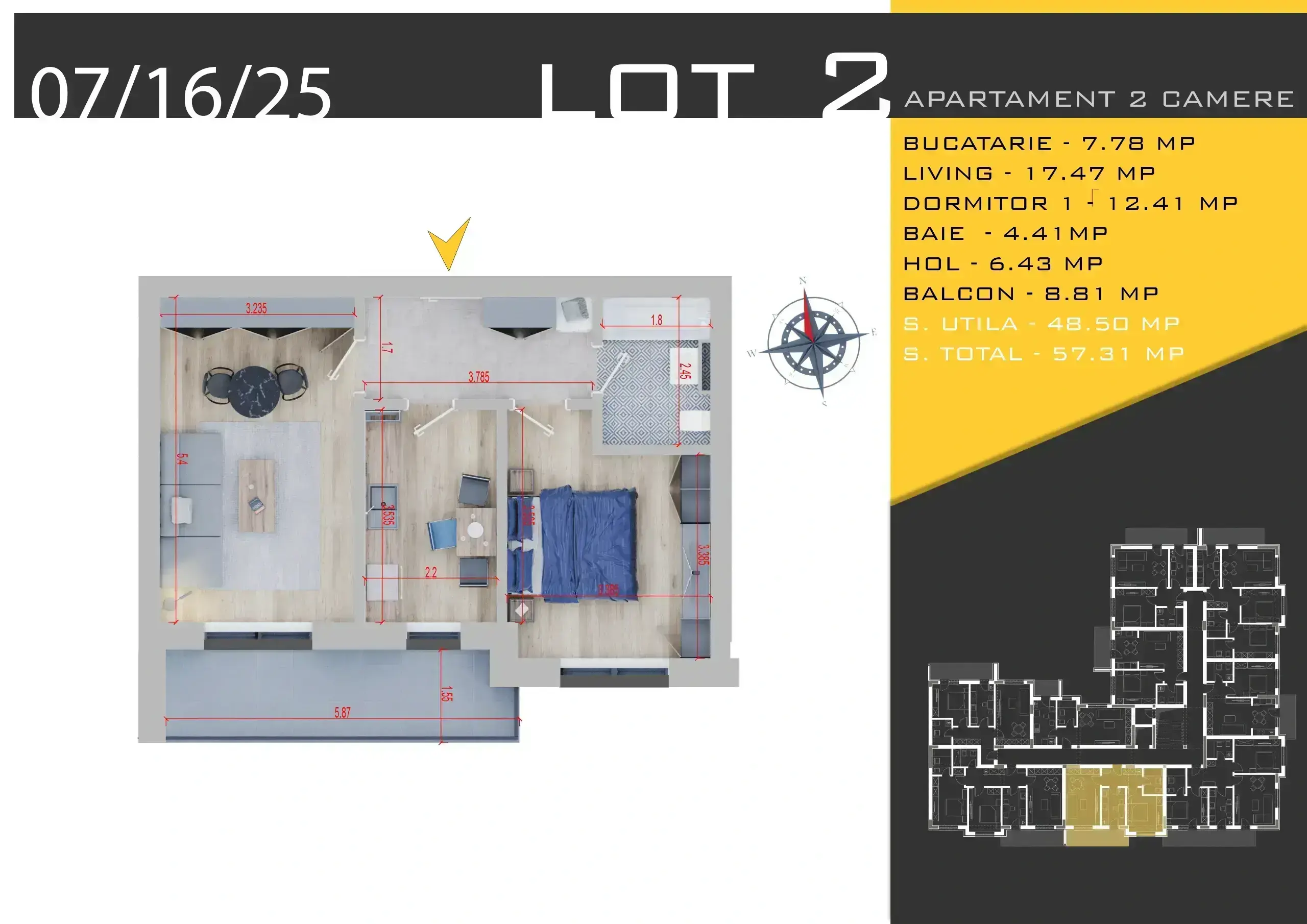 – Suprafață totală: 61.37 mp