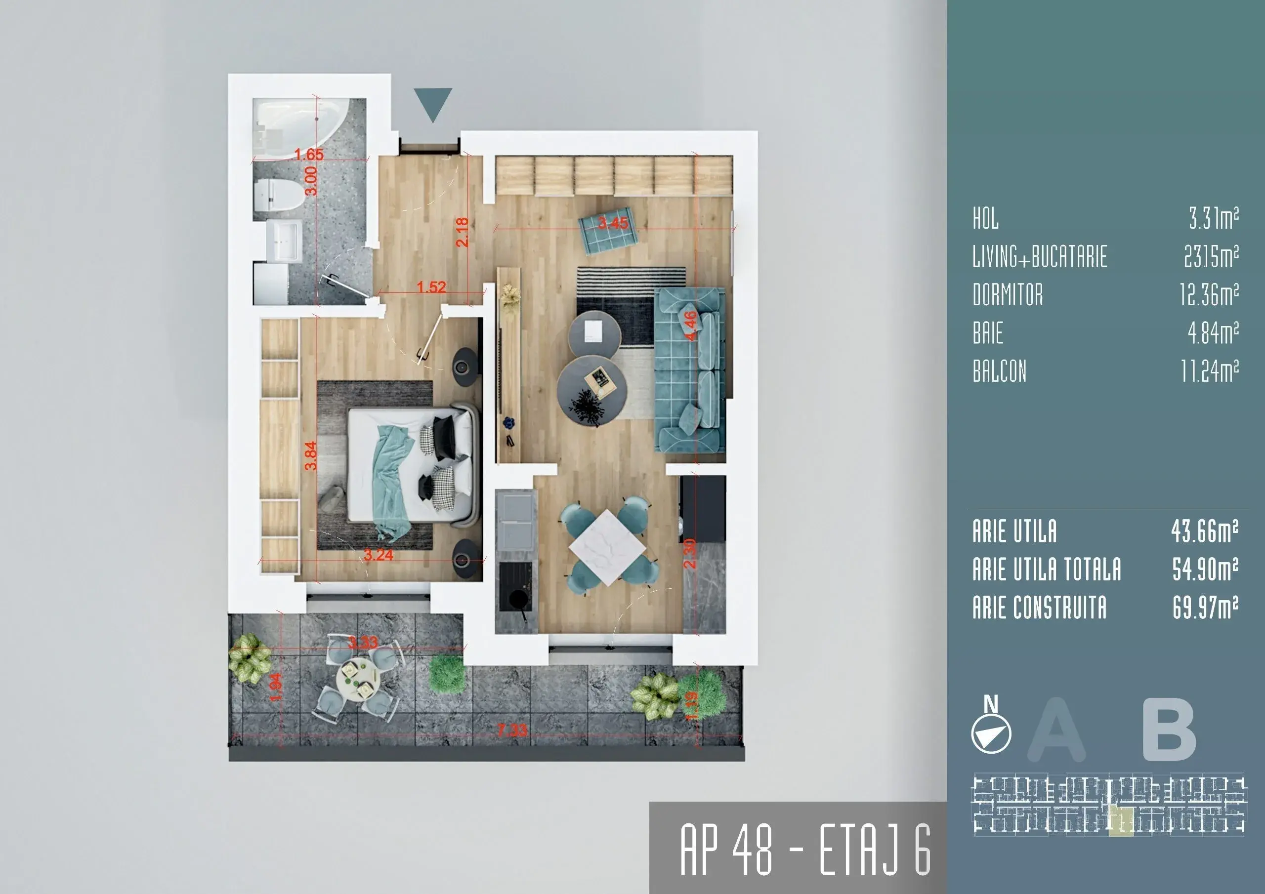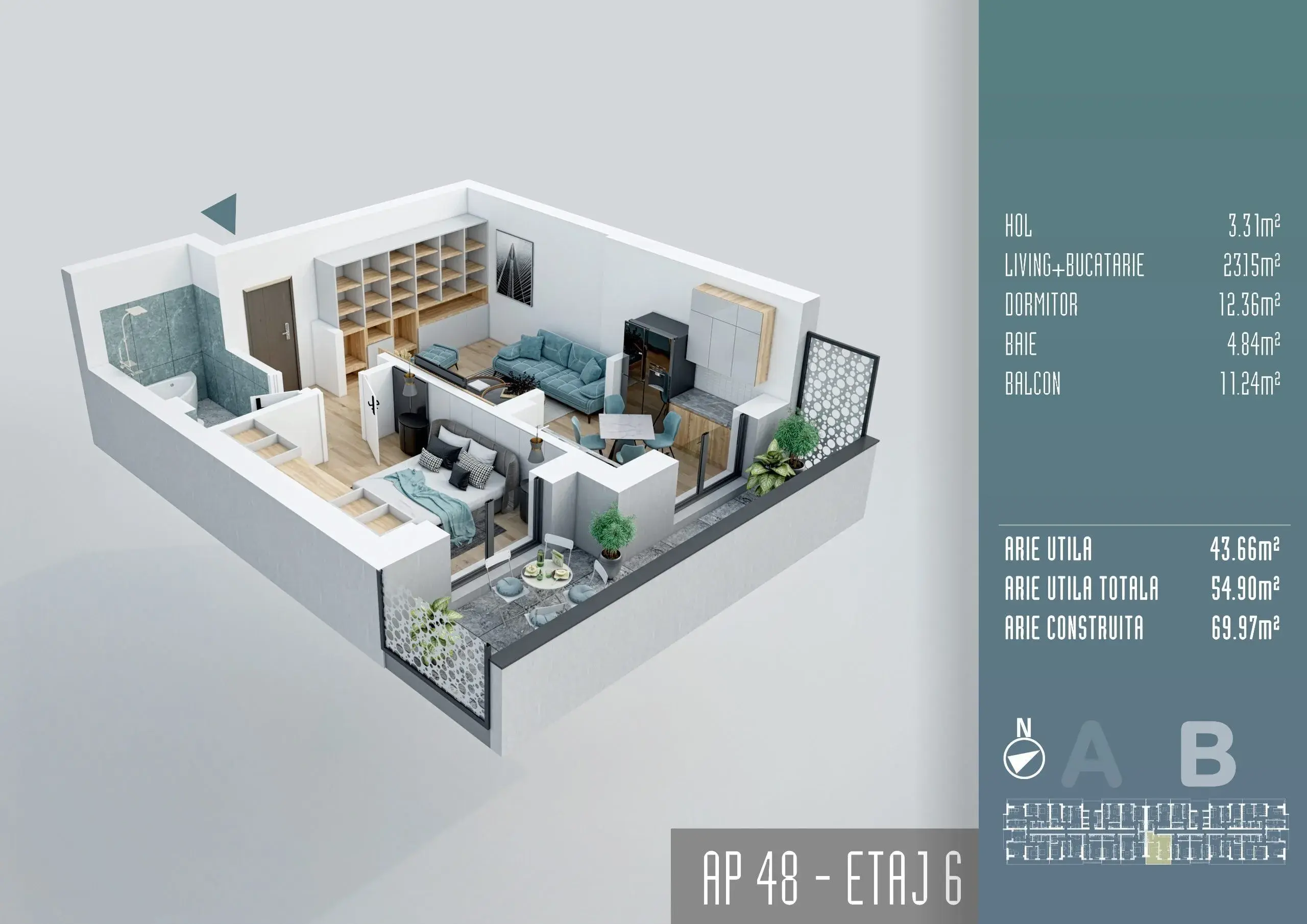 Acest apartament cu 2 camere tip Studio se afla intr-un complex rezidential premium cu acces controlat si circuit inchis, situat in zona Liviu Rebreanu – Auchan Titan. Cu o suprafata utila de 57.5 mp, apartamentul dispune de o bucatarie open space si incalzire in pardoseala. Cumparatorul poate alege finisajele interioare in functie de stadiul contractarii, cu un buget generos disponibil pentru acestea. Terasa cu o suprafata generoasa de 10 mp completeaza spatiul de locuit.