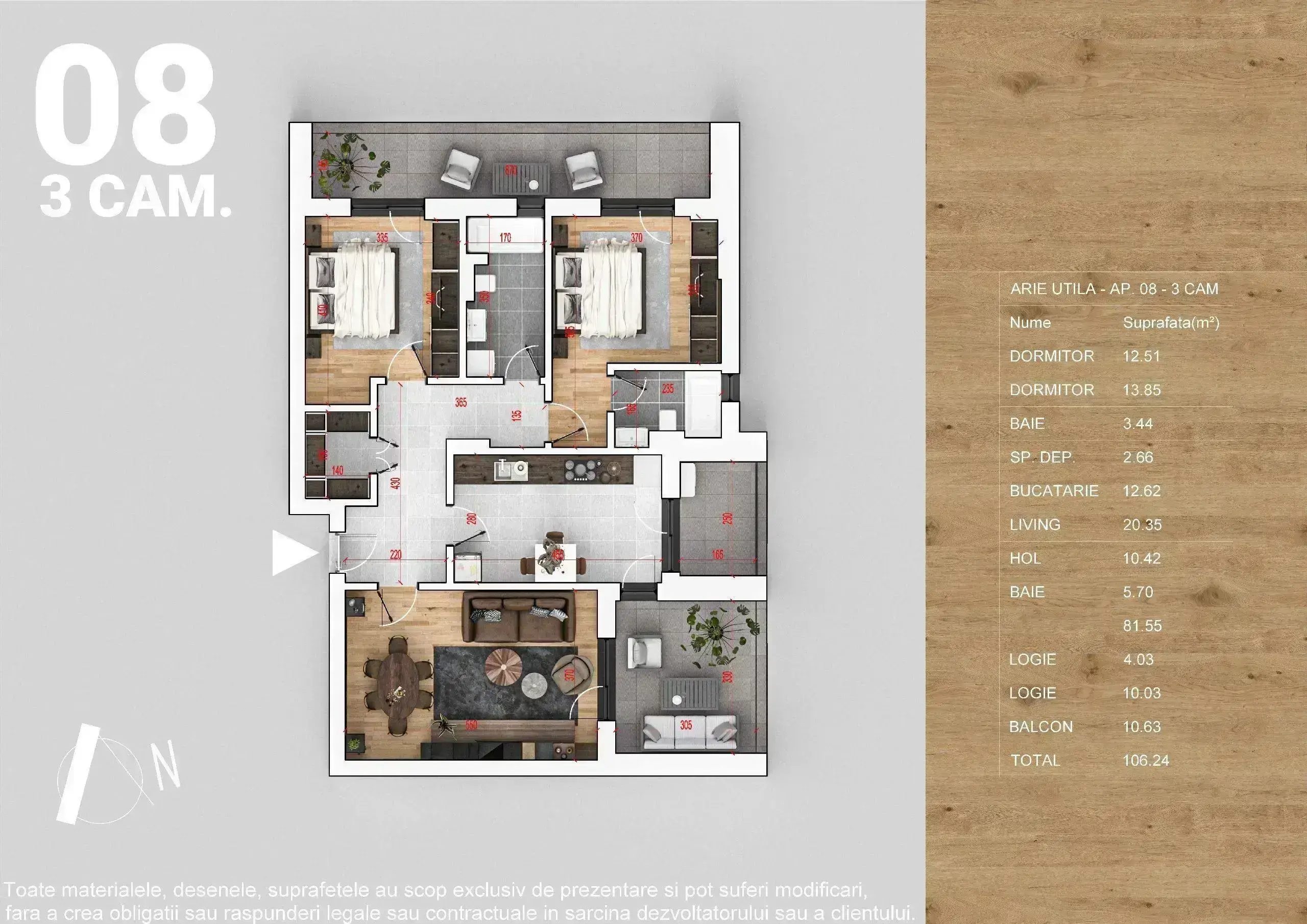 • Suprafața totală de 106.98 mp