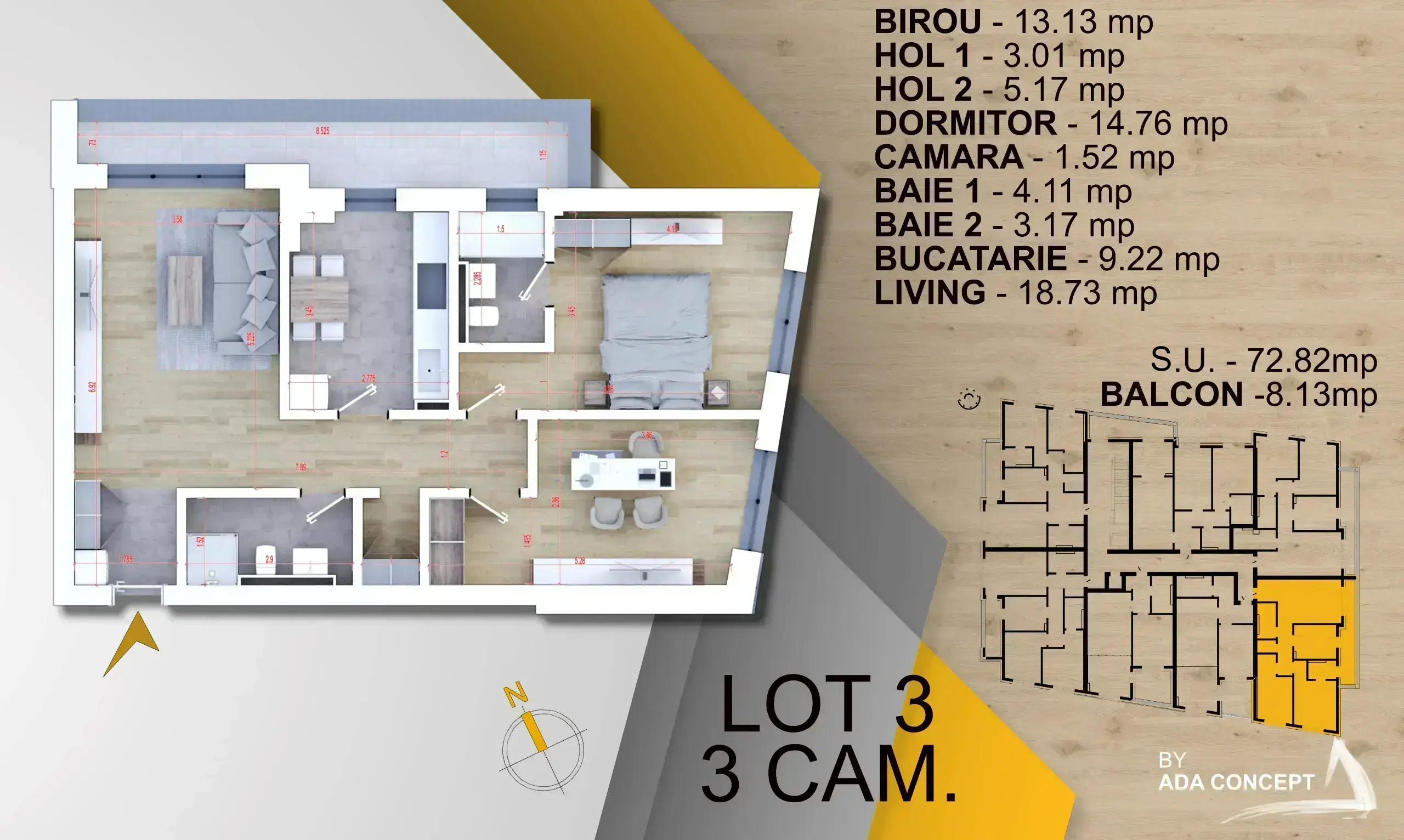 Suprafata utila totala 80 mp din care 5.23 mp terasa