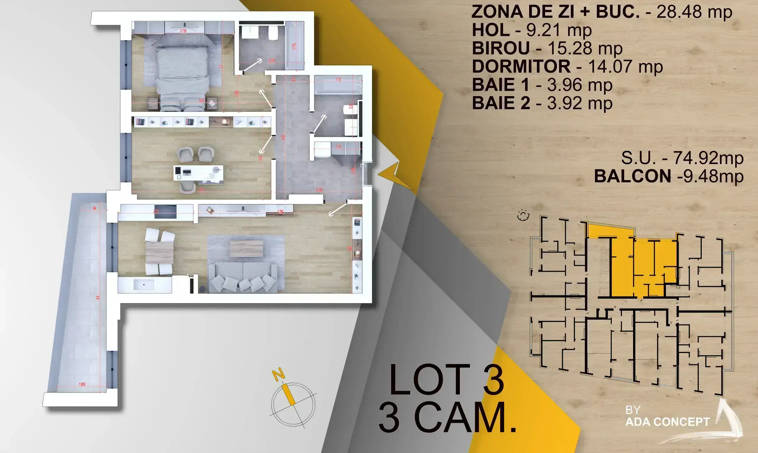 • Suprafață utilă totală de 84.18 mp, incluzând o terasă de 9.48 mp.
