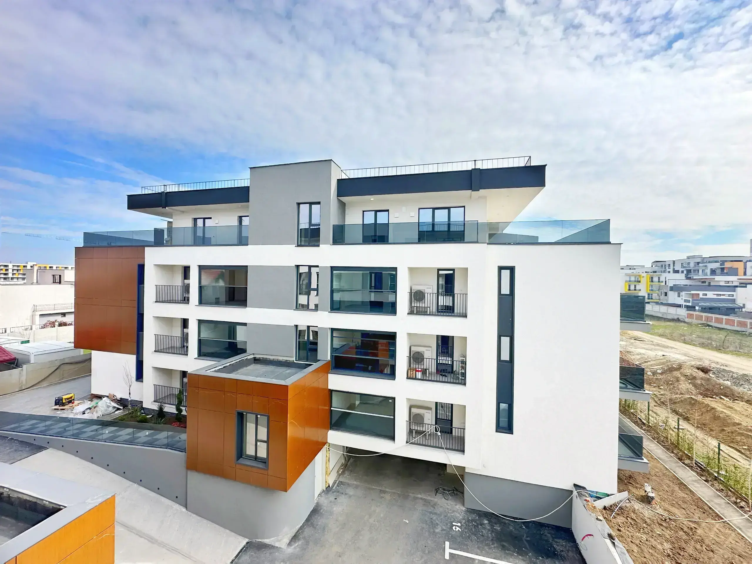 Loc de parcare la subsol inchis ermetic prevazut cu priza EV (masina electrica) integrata la sistemul de panouri fotovoltaice aferente apartamentului – se achita separat