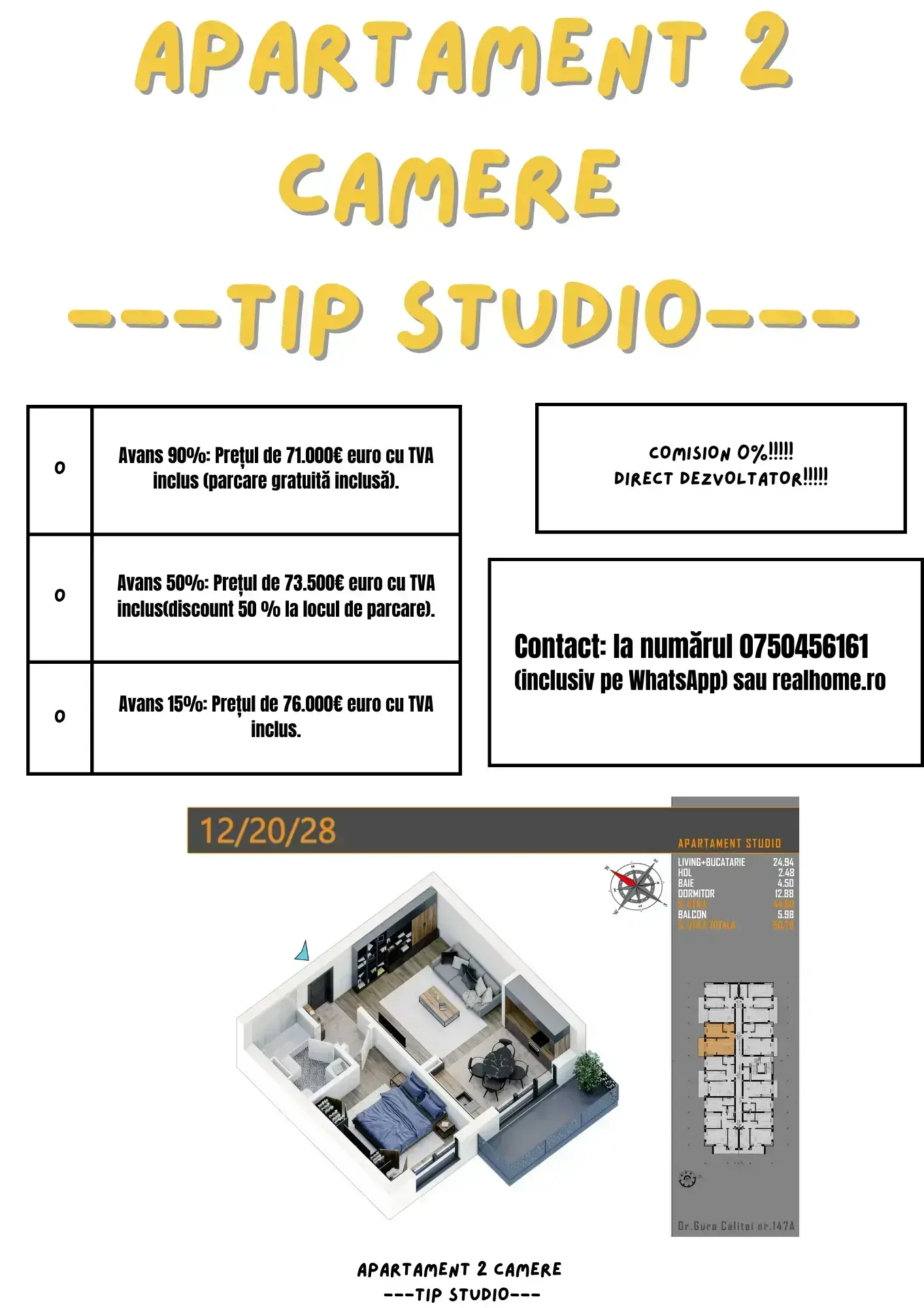 Contact: Pentru detalii suplimentare despre proiect și programarea unei vizionări, vă rugăm să contactați echipa de vânzări la numărul 0750456161(inclusiv pe WhatsApp) sau realhome.ro