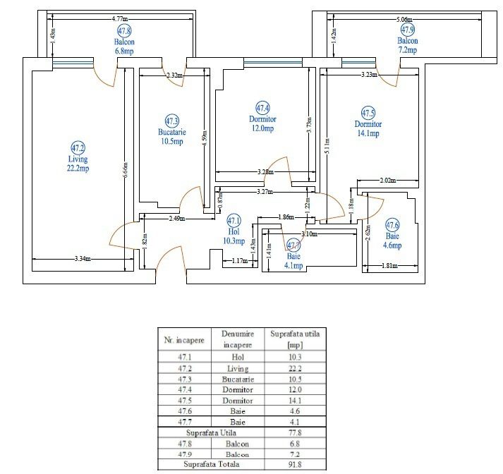 Apartamentul are suprafata de 91.8 mp din care 2 terase cu suprafata de 14 mp.