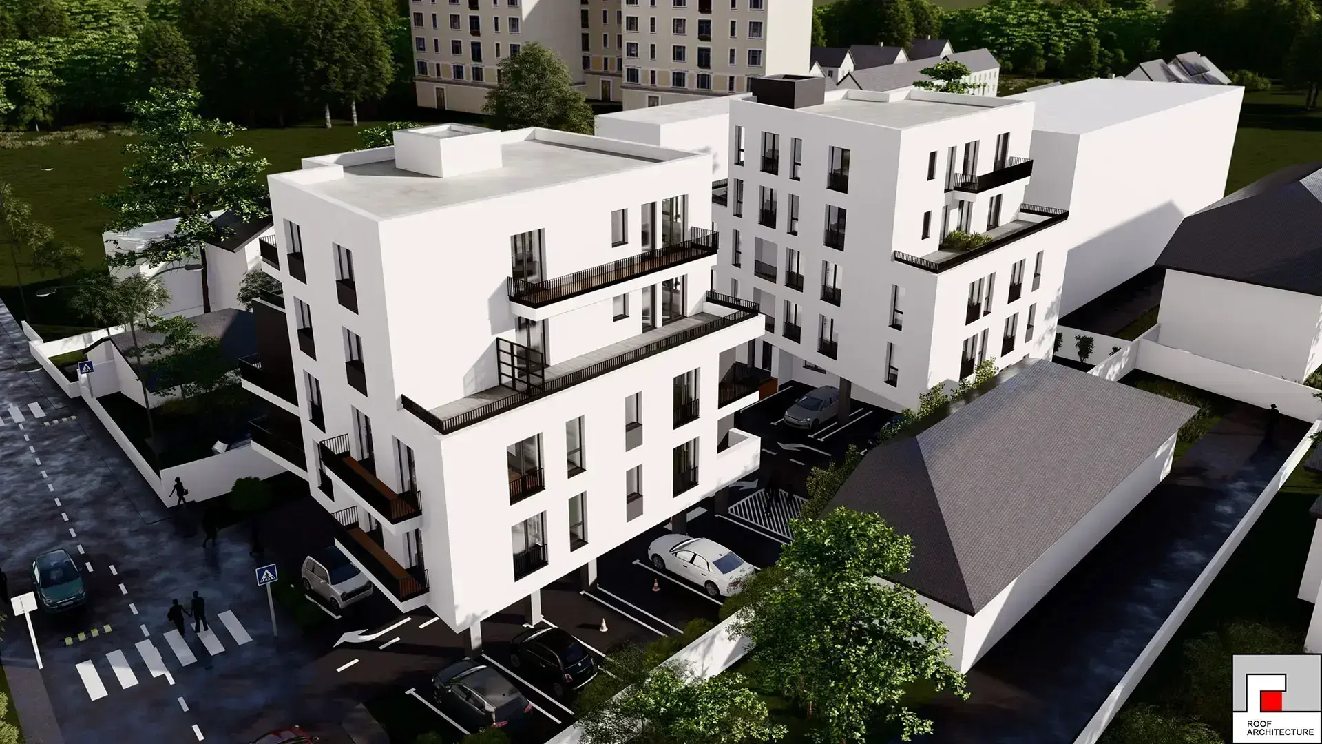 Curți private și terase generoase pentru apartamentele de la parter, respectiv de la etajul 4.