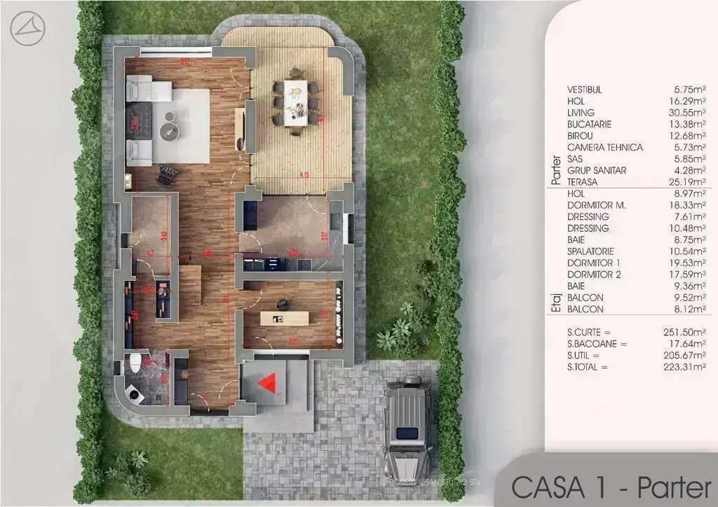Pregătită pentru instalarea panourilor fotovoltaice și a sistemului de aer condiționat, această vilă promite eficiență energetică optimă și confort sporit. Grădina, atent amenajată cu rulouri de gazon, sistem de aspersoare și plante decorative, invită natura în inima locuinței.