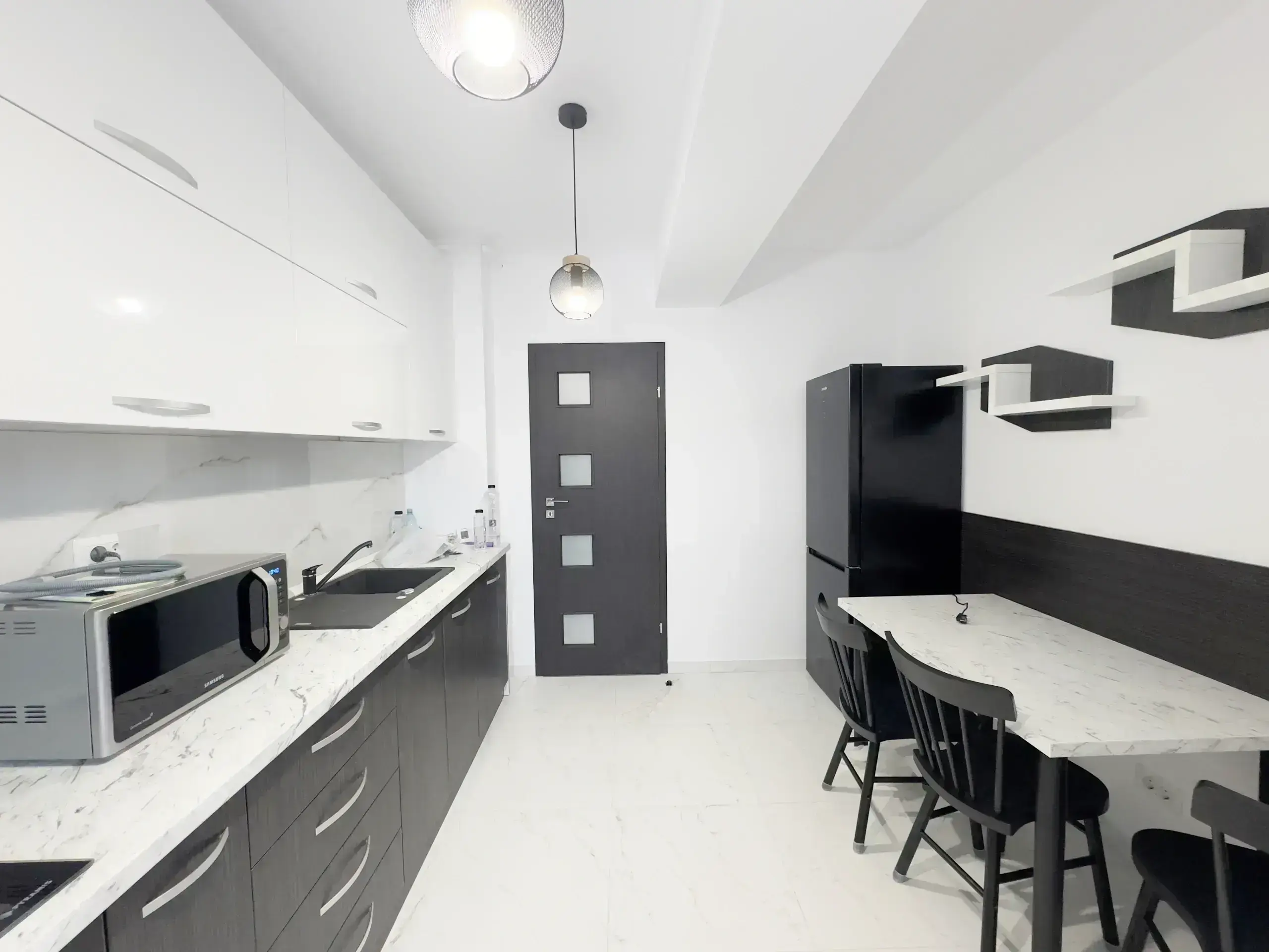 Apartament de 3 camere, pet-friendly, cu o terasă generoasă de 42 mp, situat la parter, cu o suprafață utilă de 77 mp. Dispune de bucătărie open space, living s