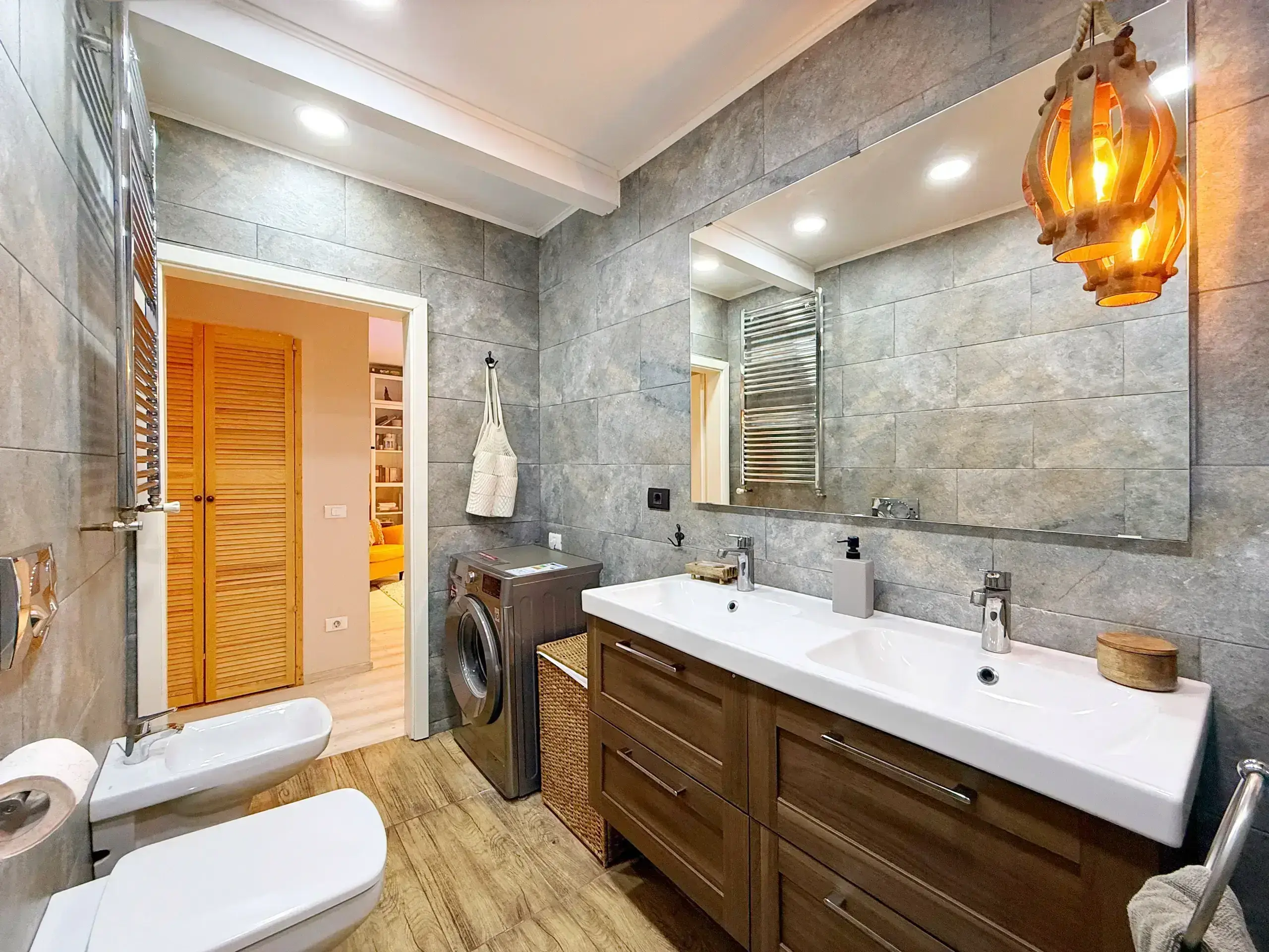 Apartament de 3 camere, pet-friendly, cu o terasă generoasă de 42 mp, situat la parter, cu o suprafață utilă de 77 mp. Dispune de bucătărie open space, living s