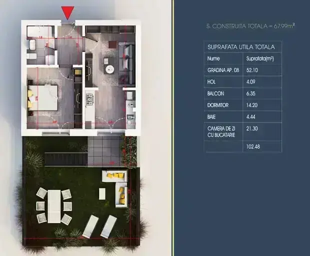 Apartament de 2 camere cu gradina de 102.10 mp din care gradina 52.10mp, intr-un imobil nou si modern, finalizat, in zona care este in plina dezolvtare, Titan – ...